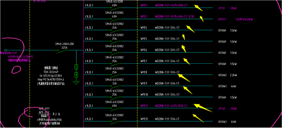 答:以系统图为准,干线为WDZB-YJY-5*16,T接箱之前为WDZB-YJY-5*16,T接箱之后为WDZB-YJY-5*6。
