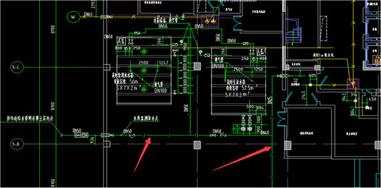 75. 如下图所示:4.20日答疑回复战时给排水仅计预埋,图纸说明与原理图下面的注1说明不一致,战时给水管道(比如:箭头所指管道)是否在本次招标范围?