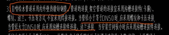 答:自喷管道,当管径小于等于DN50时,应采用螺纹和卡压连接,当管径大于DN50时,应采用沟槽连接件连接、法兰连接。