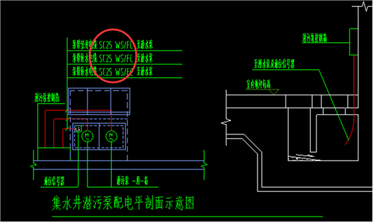 71. 如下图:人防地下室潜污泵配电箱系统图中显示配管为SC20,而潜污泵平剖面图显示配管为SC25,请明确以哪个为准?