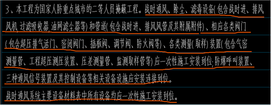 74. 如下图所示:4.20日答疑回复战时地库暖通仅计预埋,设计说明中战时也需安装到位,请明确该部分内容是否在本次招标范围?还是以后在防化设备里面单独招标?