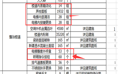 4、安装工程:包含楼梯间照明工程、智能化工程、充电桩管道预埋、弱电线路整理、楼道内表箱洁化、电梯按钮更换、雨水管改造、完善消防设备等;