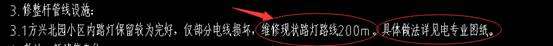 3、安装工程:包含路灯工程、监控工程、给水工程、强电预埋管、卫生间改造安装工程、门卫安装工程等;