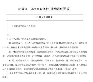 (3)竣工验收证明文件(须有建设单位、设计单位、监理单位、施工单位等盖章)。对于消防项目,竣工验收证明文件有以下材料即可:由消防机构/建设行政主管部门出具的消防验收合格证明复印件,并提供消防机构/建设行政主管部门备案网址(如有)备查。 2. 业绩需在投标人类似业绩表中注明,以上涉及到的证明资料应完整或能充分反映评审。
