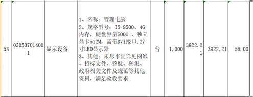 回复:如下表,省国税局金巷小区显示设备综合单价7844.42元调整为3922.21元/台。