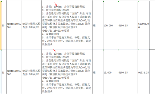 6、一标合肥师范学院-室外附属工程50、51项井规格不同单价一样,是否有误?