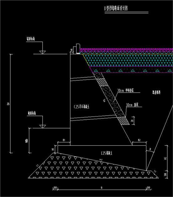 2、规划路二工程数量表中有挡墙工程量,未见挡墙详图。