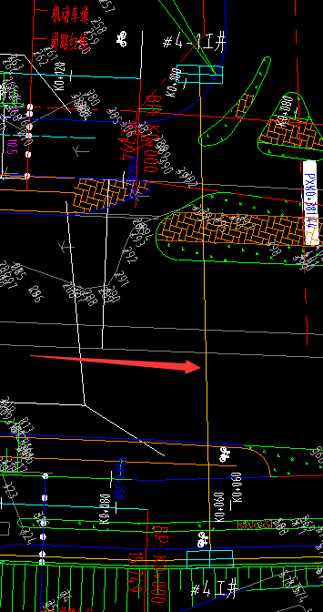 答复:按箭头所指处为辅道与已建主车道之间的界限。