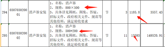 (2)消声器500*200的调整后综合单价为437.81元/节,该部分对总价影响很小,最高投标限价不调整;投标人综合考虑报价,中标后不予调整;