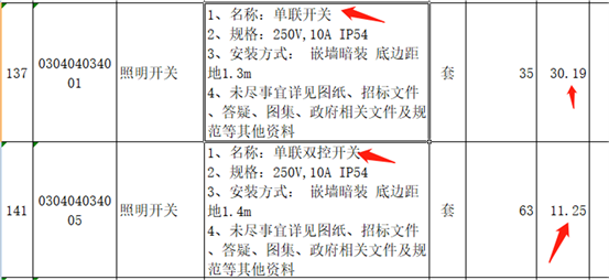 回复:经复核(1)单联双控开关调整后的综合单价应为39.2元/m2,该部分对总价影响很小,最高投标限价不调整;投标人综合考虑报价,中标后不予调整;