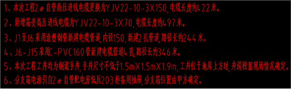 2、新增电缆保护管及电缆(包括新增高压柜及箱变进出线、预埋管,以及新增电缆井等)。