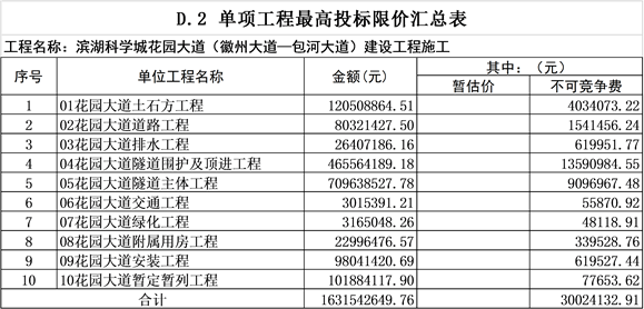 滨湖科学城花园大道(徽州大道—包河大道)建设工程施工招标文件补疑4