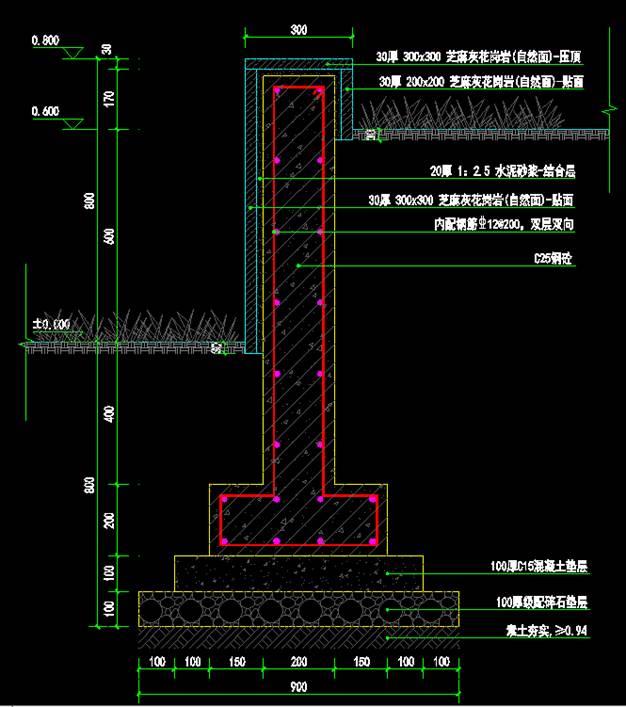 4、如图所示,翡翠湖路排水明沟的具体浆砌厚度为何?