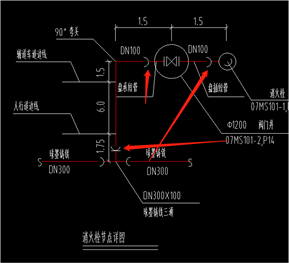 3、此处支管管径为DN300,节点为DN200,以哪个为准?