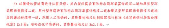 答:不涉及钢管防腐,设计给水管材均为球墨铸铁管,无钢管管材。