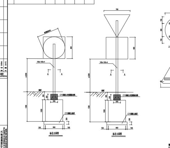 答:单悬臂立柱取消,普通单柱标杆11根,组合式单柱标杆3根,单柱矩形标杆2根,如下所示左边为普通单柱标杆,右边为组合式,二图为单柱矩形标杆。