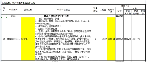 3、2#地库基坑支护工程清单第26项钢支撑清单项目控制价未包含主材费用,且远低于市场成本价,请核实。