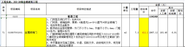 5、2#、3#商业楼建筑工程清单第71项金属玻璃门清单控制价且远低于市场成本价,请造价编制单位调研了解该材料价及市场费用并核实。