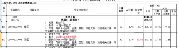 答:1#商业清单第94项、第96项;2#商业清单第99项、第101项;3#商业清单第104项、第106项地面垫层清单特征有误,综合单价无误;原清单特征100厚C15混凝土垫层应为100厚C25混凝土垫层,投标人投标报价时无需修改清单项目特征,投标报价及施工时按100厚C25执行,标后不予调整。4#、5#、6#商业地面垫层清单特征及控制价复核无误。