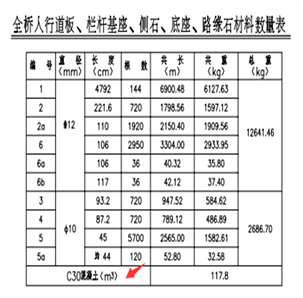 15. 图号S4-4-1-50:桥面布置图(二),现浇砼路缘石为C40砼,而汇总表为C30砼,请设计明确?