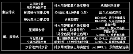 雨污出户支管及压力排水管管材见下表:压力排水采用内涂塑钢管,埋地部分外部采用加强级防腐处理。