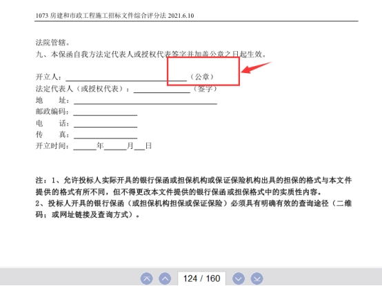 1问:关于招标文件P123-P124页投标保函示范文本中如图所示: