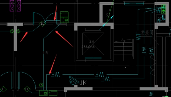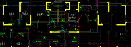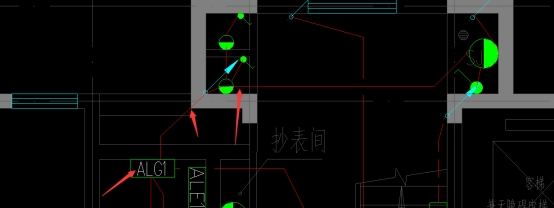 33、在生活泵房照明平面图中插座照明线路中间有隔断,是否按红色箭头所示绕泵房一周连接,请设计明确?