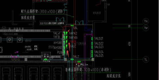 14、在电力配电平面图中该两段桥架未标注型号,请设计明确?