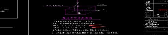 2、集水井系统,潜污泵型号系统图与平面图不符,请设计明确?