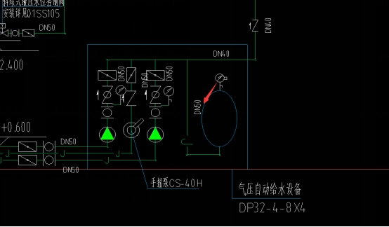 1、战时给水中到立式气压罐的管材规格,平面图与系统图不一致,请明确。