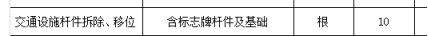 答:迁移并再利用杆件为:F杆指路标志2处、路名牌移位1处。规格及砼基础参考大样图。