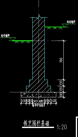 7、铁艺围栏基础图中的站外地坪与站内地坪相差多高