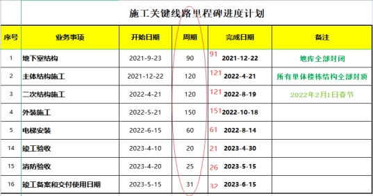 5、招标文件附件的“施工关键线路里程碑进度计划”地下室结构是否为所有的主楼及地下车库的地下室结构均是2021年9月23日开始,2021年12月22日完成?外装施工所包含的施工内容是指什么?