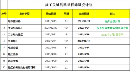 答:是的,施工关键线路里程碑进度计划中的节点完成日期届满前须完成相关的中间验收流程,开始时间可以提前或推后。
