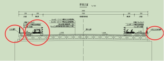 7、上部结构典型横断面图,请设计明确桥梁沥青面层摊铺范围?