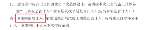 答:卫生间隔墙计入,详见招标补遗第15条。