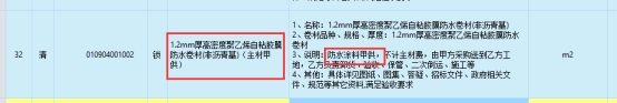 八、单位工程004地道工程第32项1.2mm厚高密度聚乙烯自粘胶膜防水卷材(非沥青基)(主材甲供),项目特征中有“防水涂料甲供”的说明(如图),请问是否可以理解为1.2mm厚高密度聚乙烯自粘胶膜防水卷材(非沥青基)甲供?