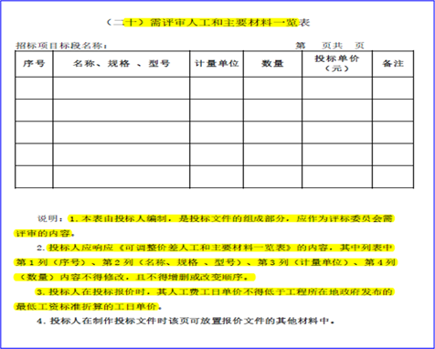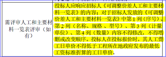 请问:招标资料中是否提供了上面截图提到的《可调整价差人工和主要材料一览表》?
