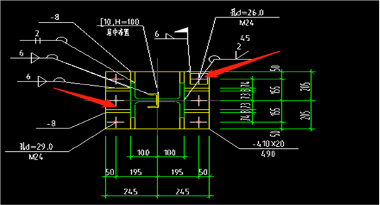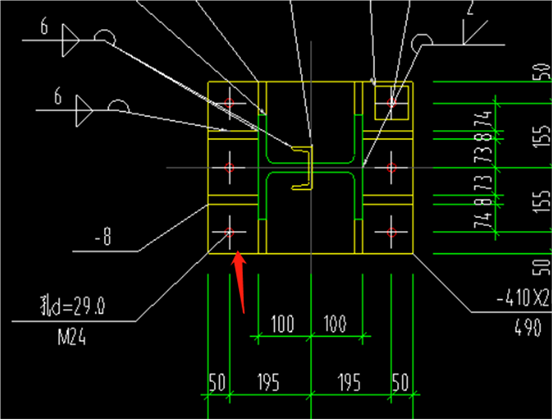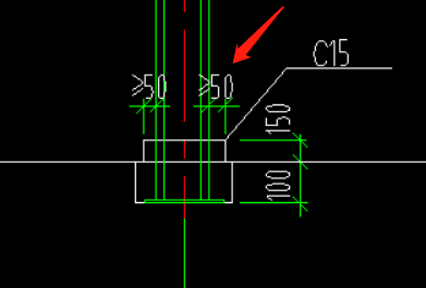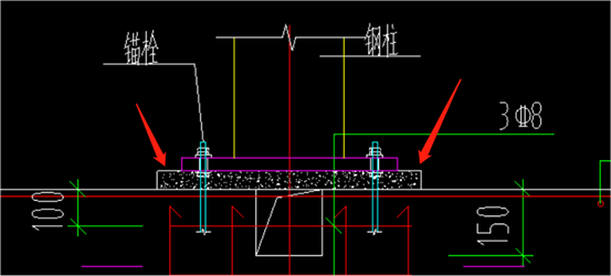 7、钢架剖面图中,柱脚位置用C15砼保护,出边大于等于50,比柱脚预埋件小,是否调整尺寸?