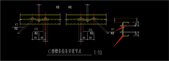 11、C型檩条拉条安装节点中,拉条均为双层,是不是屋面结构布置图中除XG、SC外的XT、CG、T均为双层布置?