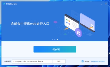 1、双击打开 FastMeeting_Cloud_for_Windows_V3.41.2.85( )安装包,点击“一键安装”,如图: