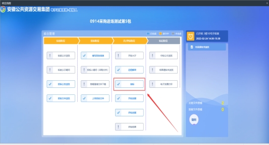4、进入安徽公共资源交易集团电子交易系统后,选择相应的项目,点击“询标”菜单,项目经理视频陈述后,投标单位还需对陈述事项进行签章确认。