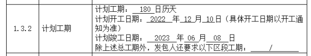 1.本项目招标文件 第二章 投标人须知前附表 1.3.2 计划工期内容修改如下: