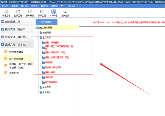 1. 本项目投标文件制作软件-技术文件施工组织设计制作节点要求中,包含很多商务文件详细评审资料节点,详见下图: