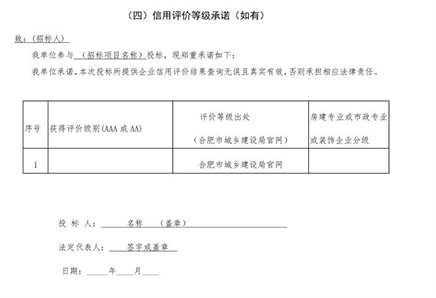 6.招标文件P234页:(四)信用评价等级承诺(如有)原格式为: