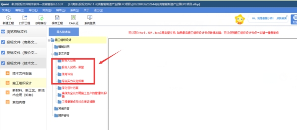 7.投标文件制作软件中,施工组织设计中有“投标人业绩,投标人奖项、荣誉,信用评价,综合实力认定成果”四个节点(如下图所示),请问:此几项节点内容是否可以填写“详见商务文件”?