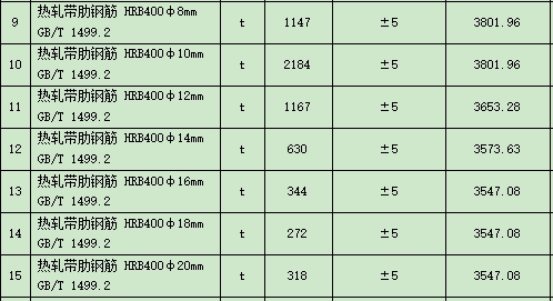 可调整价差人工和主要材料一览表钢筋规格: