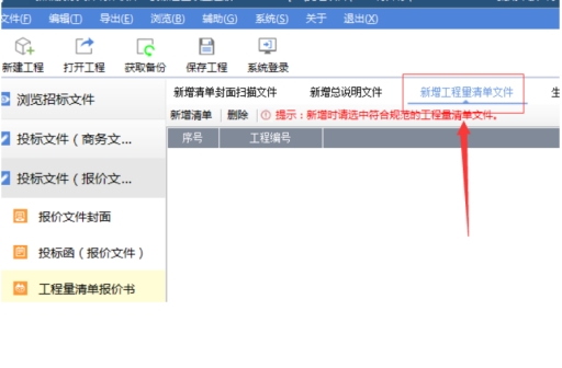 1.在下图新增工程量清单文件中导入“1.18zhtb”文件后,直接生成工程量清单(不做填写)。