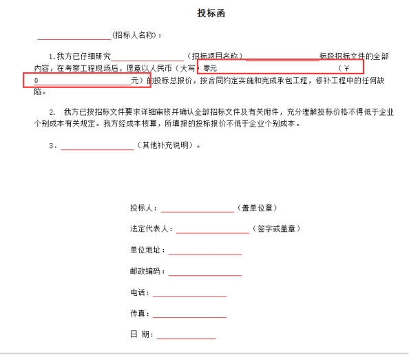 3.新点投标文件制作软件中的投标文件(报价文件)中的投标函(报价文件)中的投标总报价按“0”元填写,详见下图。投标函投标人按招标文件格式制作并加盖公章(或电子章)后,上传至投标文件(报价文件)“投标所需证明材料”中,评审时以投标文件(报价文件)“投标所需证明材料”导入的投标函为准。