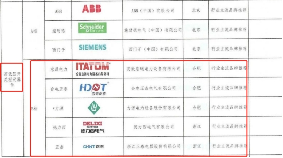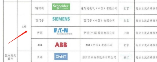 答:高低压开关柜元器件中除断路器采用A档品牌,其余元器件采用B档品牌。对于没有推荐品牌的材料,中标人进场后需根据招标人要求自行推荐三个品牌并进行择优选择报招标人审批后投入使用,且品牌档次不低于市场上中高端品牌档次。